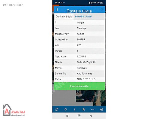 Muğla, Menteşe İlçesi, Yenice Mahallesinde Ada No: 270 ve Parsel No: 1 olan 9075 m2 tarla satılıktır.