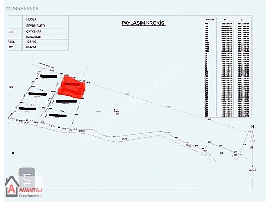 Seydikemer İlçesi Çaykenarı mahallesinde rıza-i taksimi harita mühendisi tarafından sayısal değerler ile koordinatları belirlenerek yapılmıştır.
