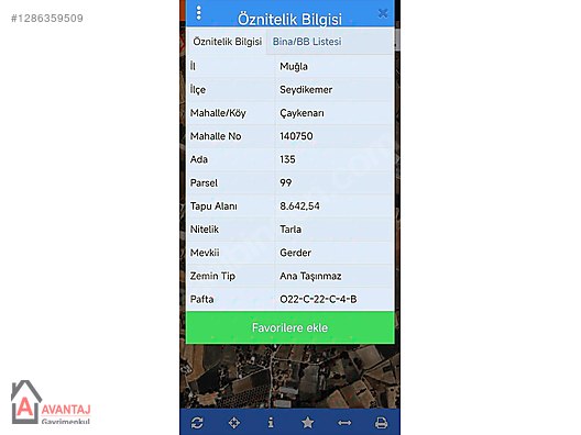 Tapunun tamamı 8.642 m2 olup, 480 m2'si satılıktır.